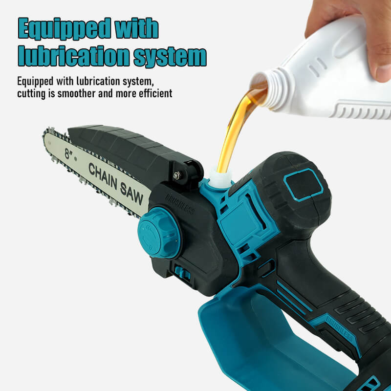 With its automatic oil pump, the chain stays well-lubricated during operation, reducing friction and improving performance. The cordless chainsaw 8 inch model also features a quick-adjust chain system, making it both user-friendly and highly efficient.
